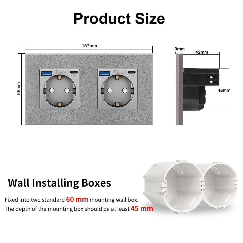 Bingoelec 86*157mm High-Quality Marble Socket with A+C Wall Outlet for Global Markets