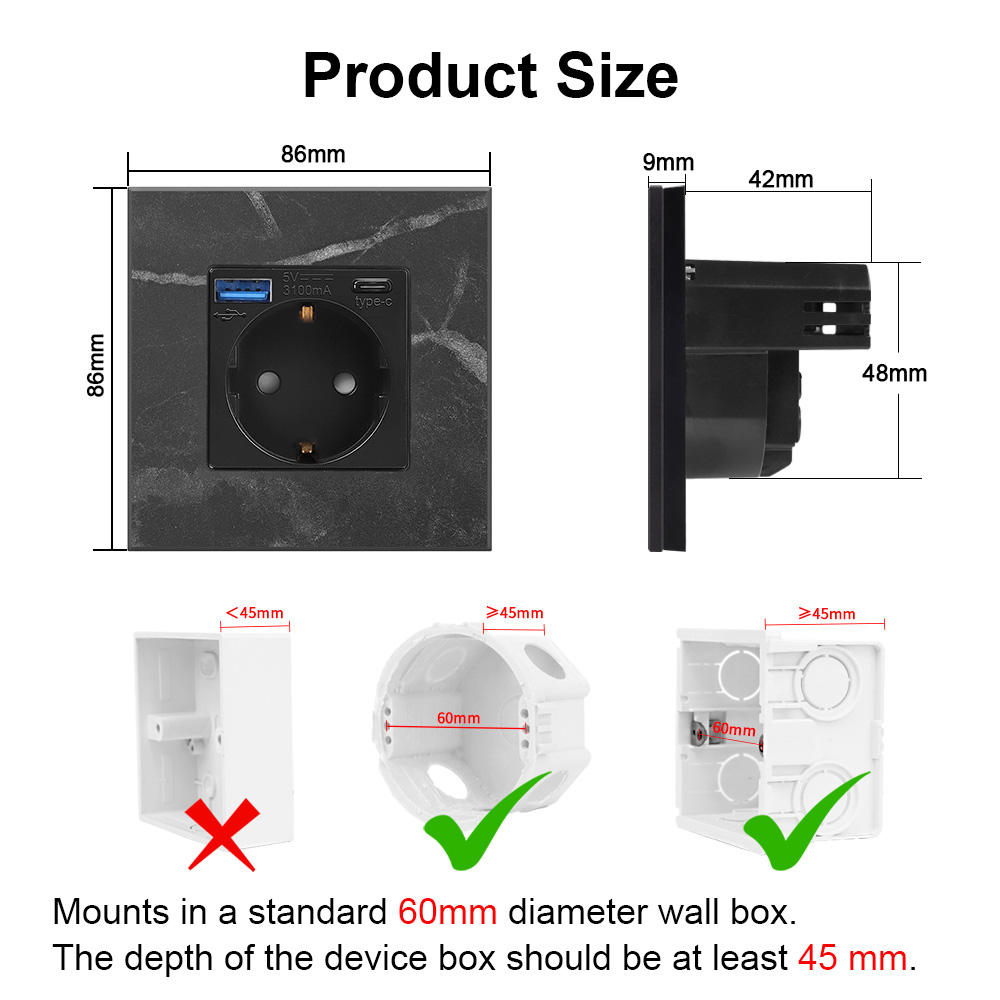 Bingoelec Marble Germany socket with A+C Wall Outlet for Home Office Hotel Decor