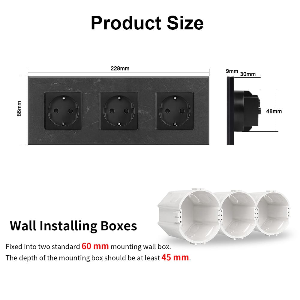 Bingoelec Marble Triple socket 86*228mm Modern Design Wall Outlet for Home Decor